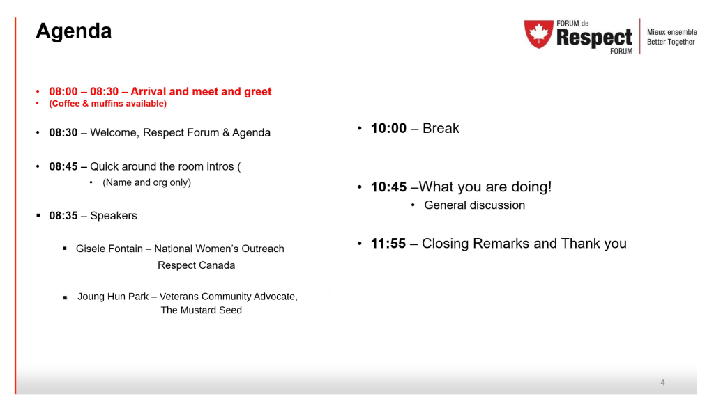 The Mustard Seed is a Christian, faith-based, not-for-profit organization that serves vulnerable and unhoused populations with emergency services, housing, health and wellness services, and wrap around supports in seven cities across three provinces. Launched in 2024 and funded by the federal government, the Veterans Advocacy Program provides these services to veterans of the Canadian Armed Forces and RCMP who experiencing, or at risk of, homelessness. The goal is to prevent and reduce veteran homelessness among those who have served by securing suitable, affordable housing and offering all the wrap around services required to stabilize that housing for the long term.