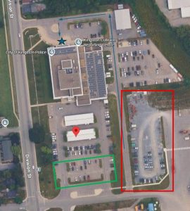 Parking: Please use this map to access free parking provided by Kingston City Police and the City Works Department so as not to congest its limited parking in front of Police headquarters. Attendees may park in the area denoted by the red rectangle. It may be accessed using the traffic light intersection at Barbara Ave. Please follow the blue arrow from the City Works parking yard to the front entrance of the Police headquarters (see the blue star on sketch). Carpooling is recommended as there are a finite number of spaces in the yard. Attendees may also be dropped off at the main entrance (blue star). The green box is for the guest speakers and out of bounds to attendees.
